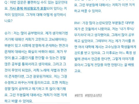 * 방탄소년단 여혐논란 피드백 ->