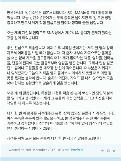 * 방탄소년단 표절논란 피드백 ->