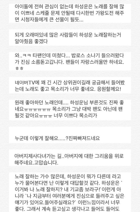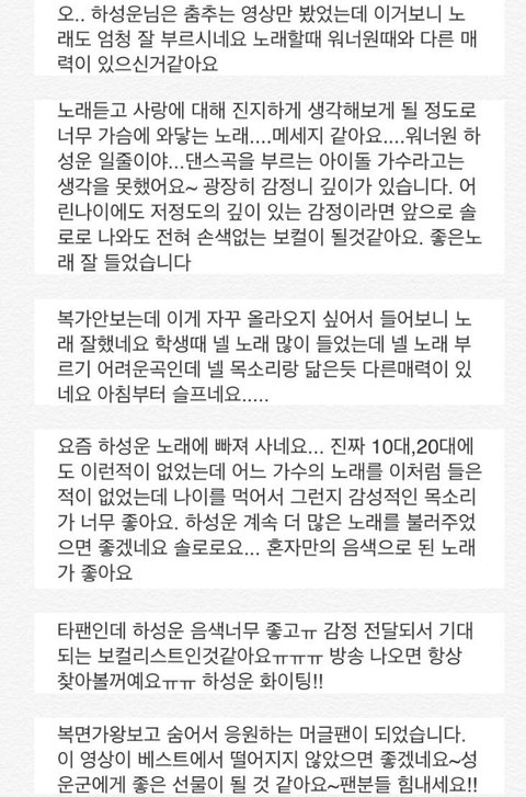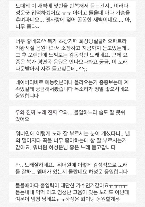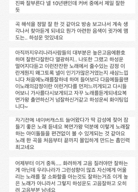 “ 노래 잘하는 가수 많은데, 하성운이 뭐가 다른데 라고 누가 물어본다면 난 이렇게 대답할것같다.