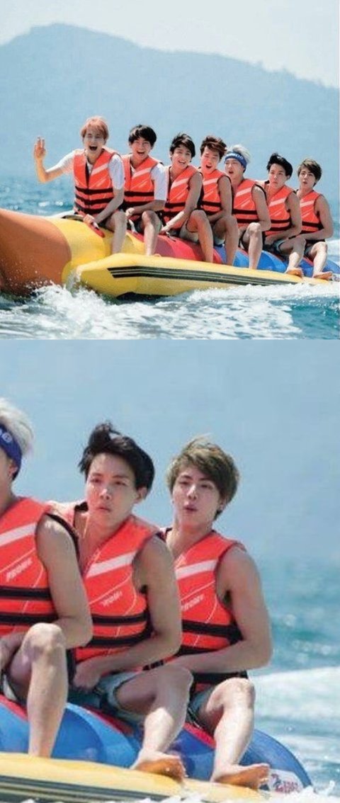 방탄소년단 진이 같은 멤버 제이홉의 멘붕의 한가운데에서 '맛있는거 내가 대신 먹어줄게'를 외치고있다.