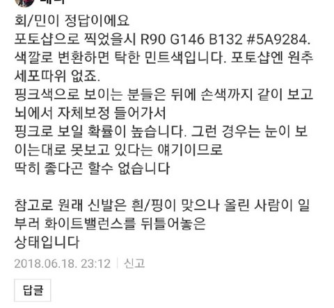 누가봐도 핑크아니냐?????? 이리보고 저리보고 앞으로보고 뒤로보고 다시봐도 연핑크에 흰색이구만 딸기우유색