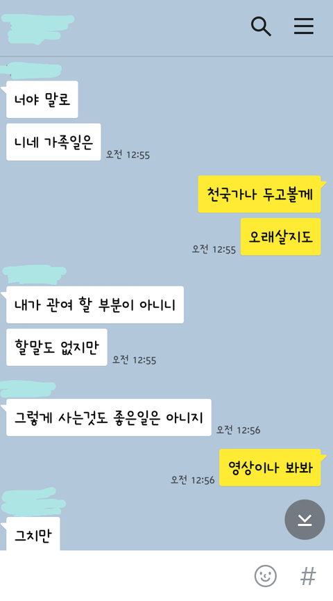 난 가족에게 죽임을 당하고 있어서 이지옥 구렁텅이에 빠저 나올려고 죽일려 하는데 죽임 또 범죄자 취급 할꺼고 정작 범죄자와도 살부닥 끼고 살면서 이게 콩인지 똥인지 몰르고