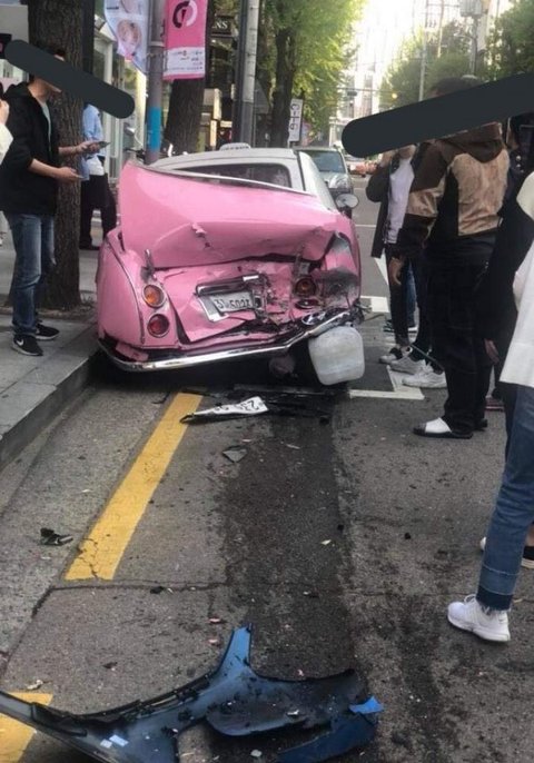 가로수길 랜드마크 핑크차 박살내고 뺑소니 치다가