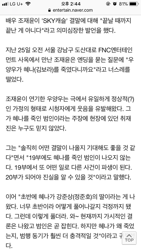 우양우교수 역 맡으셨던 조재윤배우님이 인터뷰로