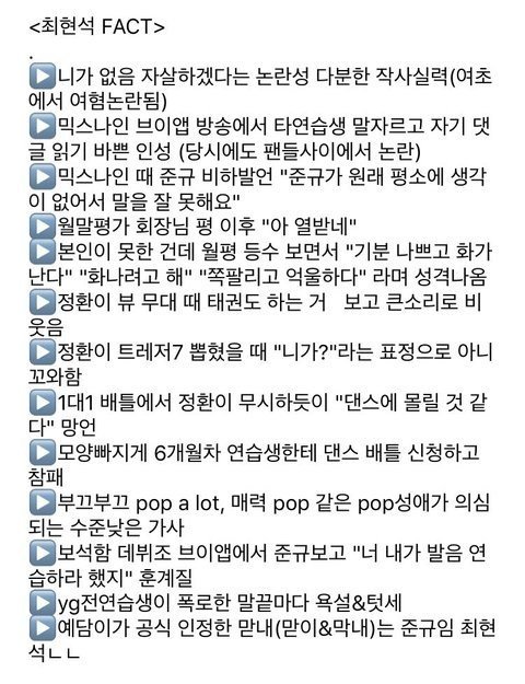 최근에 하루토한테 꽂혀서 Yg보석함 다시 보는 중이야. 이번에 7명 확정나고 최현석 ㅈㄴ 까이던데 이유좀.. 인성 논란 이런 거 터졌어??? 난 최현석 좋은데ㅜ