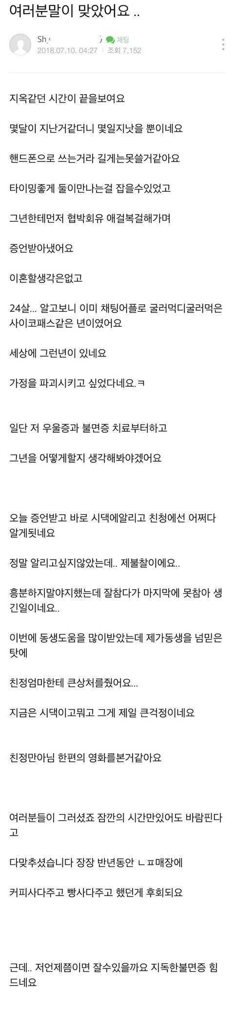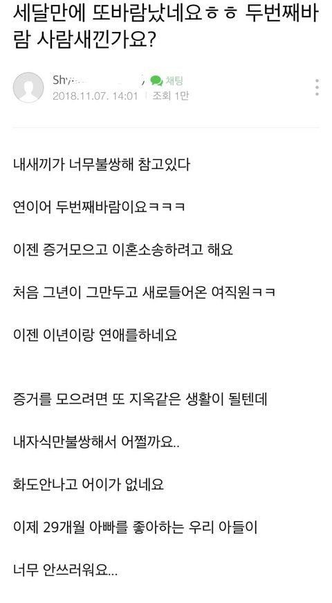 와 cc를 6년이나 하고 결혼했는데도 저 지랄이면 진짜 남자 뭐 보고 결혼해야돼? 미친새끼 진짜;
