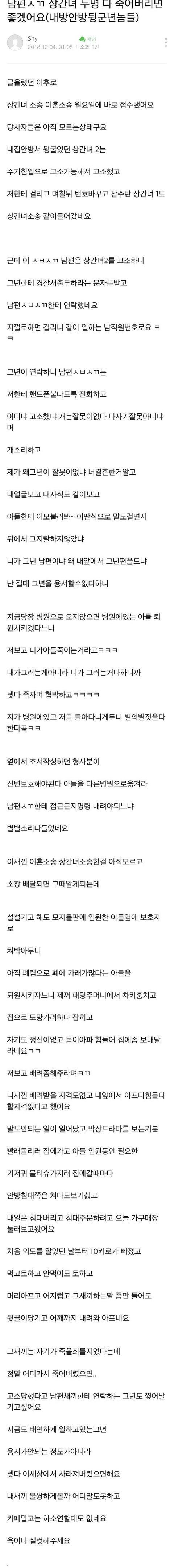 와 남편이랑 상간녀 년들 진짜 신상 털어야되는거 아님??? 대한민국에서 얼굴 제대로 못들고 다니게 해줘야됨