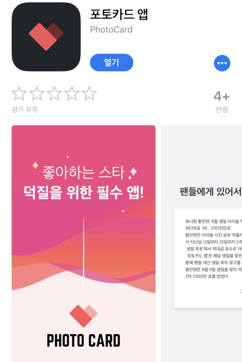 웅녀 엘사님들! 아이폰에도 드디어 포토카드앱이 나왔어여! 포토카드 투표 같이 해주세여!