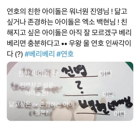 백현 슨배릠 멋찌다잉