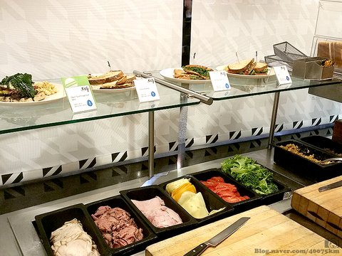 소스 역시 마요네즈, 허니 머스타드, 디종 머스타드는 기본이고 여기에 더해서 스파이시 마요, 허브 마요, 홀그레인, 바질페스토, 과콰몰리, 볼로네즈 등 다양한 스프레드가 매일 바뀌어 가며 제공됩니다.