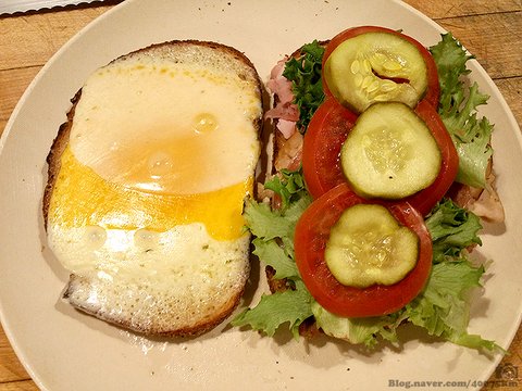 손님들이 주문할 수 있는 메뉴는 아니고, 요리사 특권을 남용해서 사심 듬뿍 넣어 만든 특제 샌드위치라고 할 수 있지요.