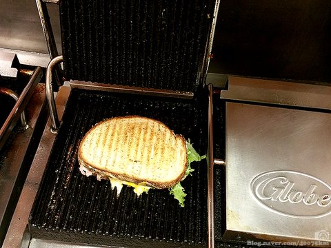 샌드위치의 컬쳐쇼크, 파니니 프레스입니다. 예전부터 영화 등에서 파니니 프레스로 샌드위치를 눌러서 굽는 것은 많이 봤지만 실제 그 효과가 어떤지는 전혀 상상도 못했더랬지요.