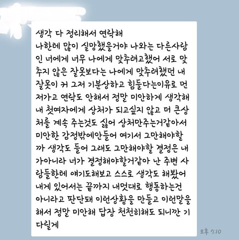 저렇게 보낸거 보면 자기는 헤어질 준비 다했다는것 같고
