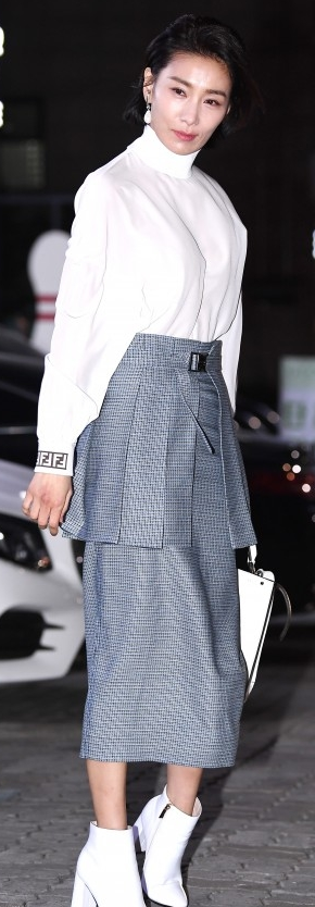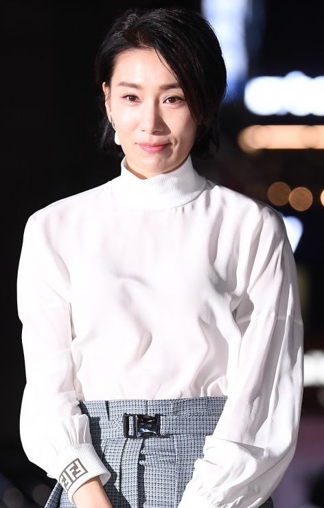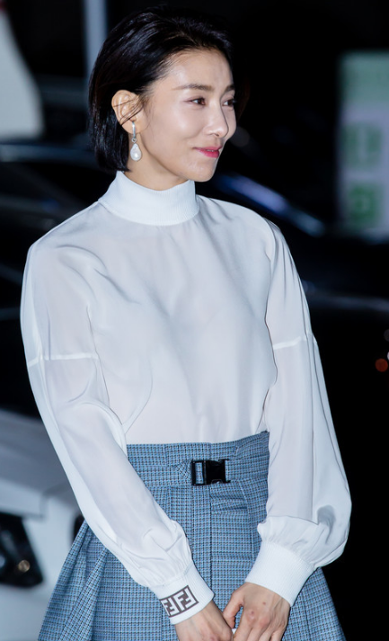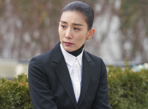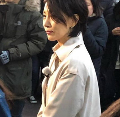 단발머리에 트렌치코트로 시크하면서도 우아한 매력을 뽐낸 김서형