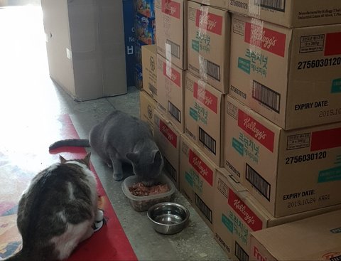 겁 많은 흰둥이는 편의점 간 콩이 기들리고~~