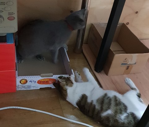 콩이와 흰둥이의 할 일은, 박스와의 전쟁~!!