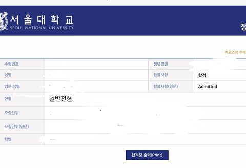 서울대 붙었다ㅠㅠ