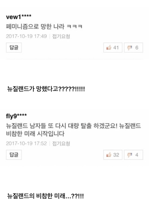페미니즘으로 망해가는 뉴질랜드ㅋㅋ