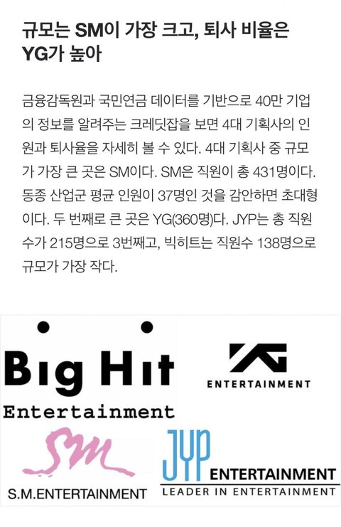 JYP 직원수: 215명. 퇴사: 38명 (18%)