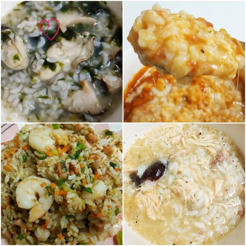 왼쪽아래는 새우볶음밥, 오른쪽은 닭죽이에요!