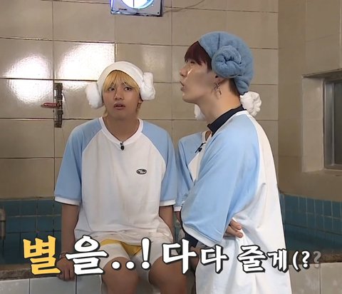 방탄끼리 신조어 맞추기? 해서 못 맞추면 계속 사우나에 남아있는 게임하는데 진짜 하나뚜 제대로 몰라.. 정국이나 알엠이나 진만 대충 좀 아는 것 같고 지민이랑 제이홉은 특히 진짜 심각할 정도로 모르는 ㅋㄱㅋㅋㄲㅋㅋㅋㅋㅋ오죽하면 지민이랑 다른 팀인 정국이가 지민이형 이런거 진짜 모른다면서 져줄걸 그랬다며 말함ㅋㅋㅋㅋ