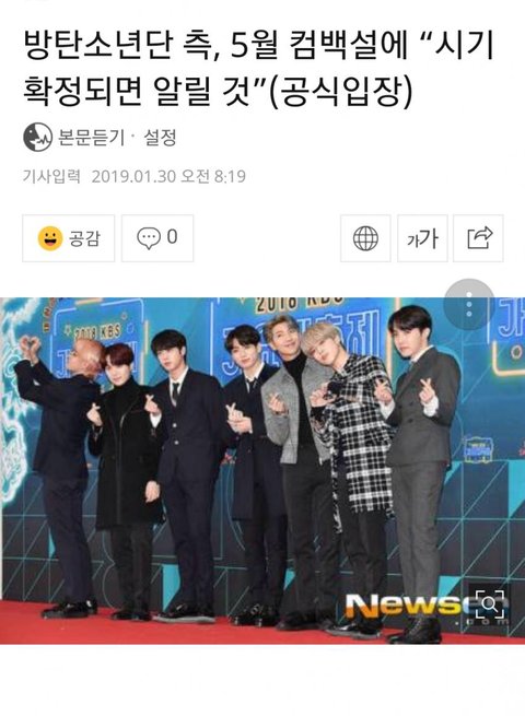어제 뮤비촬영도 오보고 컴백시기도 아직 확정 안됐다고 공식입장 떴는데 기레기들 또 난리였나보네 한번 더 낸거보니