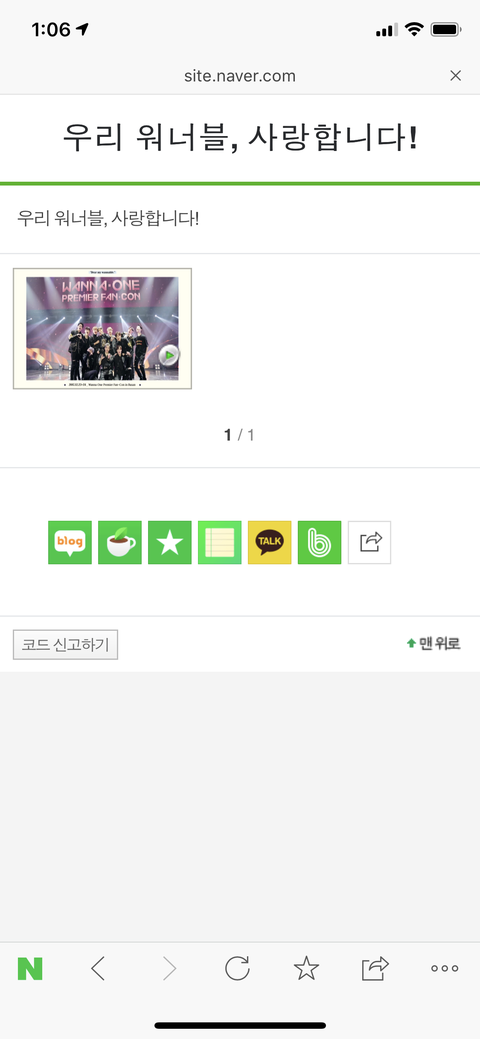 아래가 qr코드 누르면 나오는 화면임 누르면 우리 워너블 사랑합니다!라는 이름으로 영상이 올라와있음 이게 뭐지?이러고 들어가보면