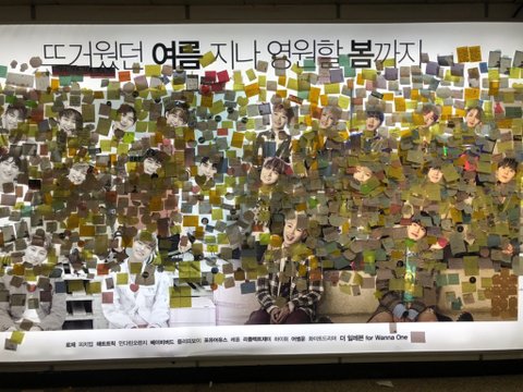 아래 포스팃 사진은 워너원 마지막 콘서트 이후에 홍대역에 걸린 워너원 광고에 팬들이 워너원한테 고맙다고 팬들이 글 써서 붙인거임!