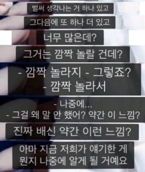 영상 보고나서 글 읽어주라 설명 아래에 있음 (글고 제목은 멤버들이 팬들이 배신감 느낄 정도로 깜짝 놀랄 일 있을거라고 직접 말해줘서 제목도 그렇게 한거임...제발 본문 좀 읽고 댓글 써주라... )