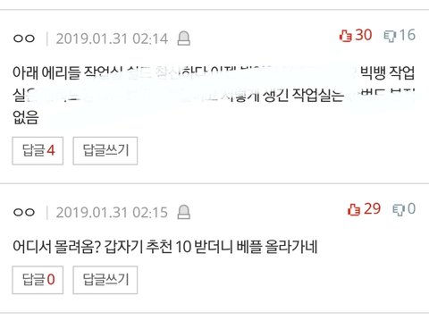 지금 또 추천조작들어감 밑에댓글에 추천눌러