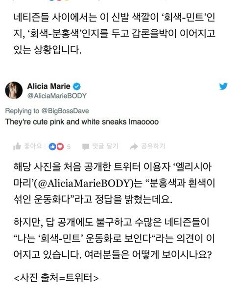 논란 중인 운동화 색깔ㄷㄷ