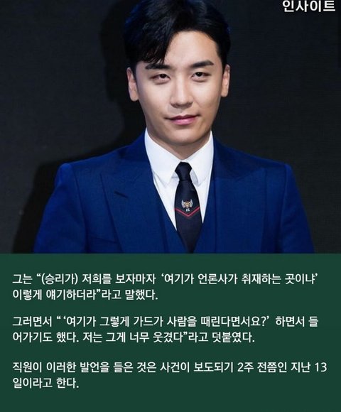 폭행사건 들은 승리가 버닝썬 들어가면서 했던 말