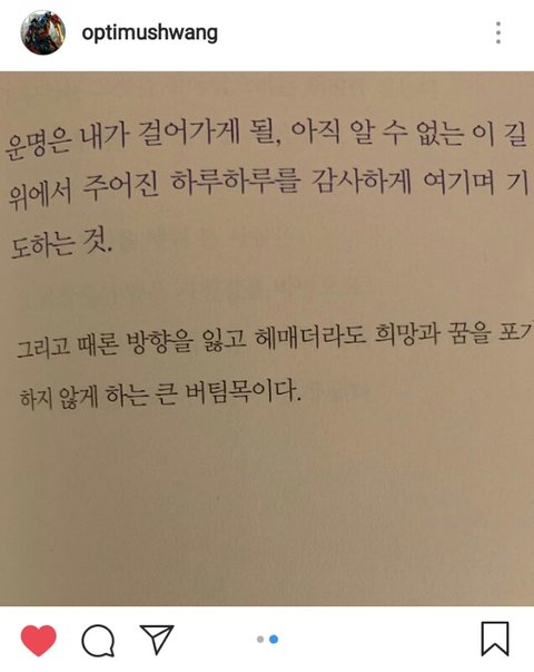 어제 황민현이 인스타에 사진 한 장을 올림