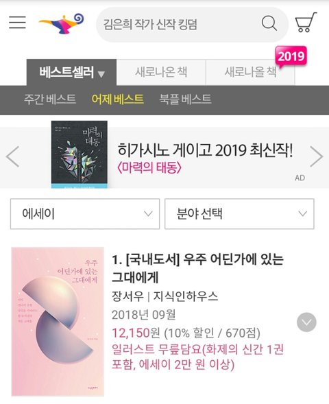 알라딘 베스트셀러 에세이부문 1위