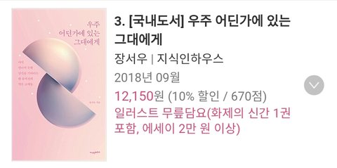 어제 종합 베스트셀러 3위를 기록함★