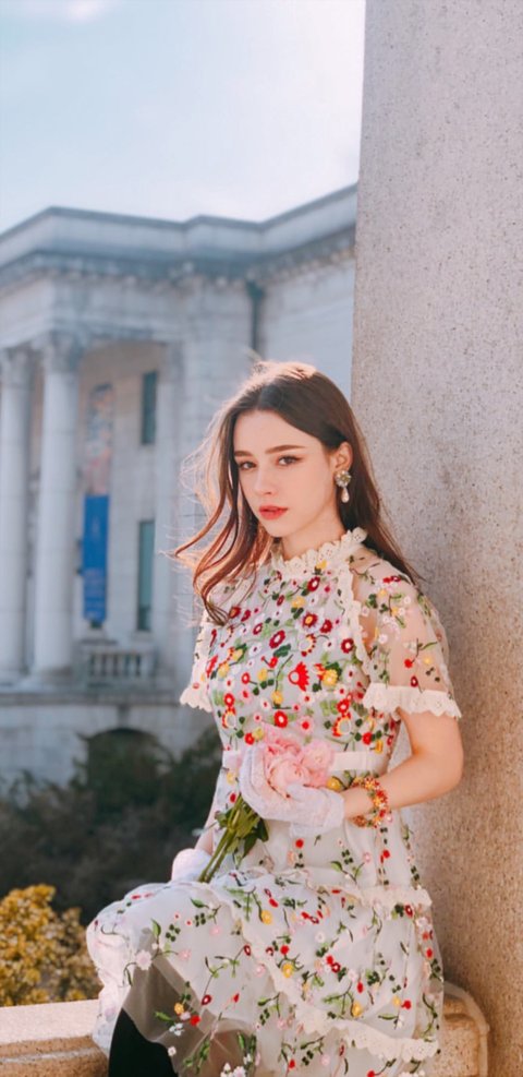 쉬폰 소재의 원피스를 입고 사진 찍은 다샤 타란.