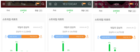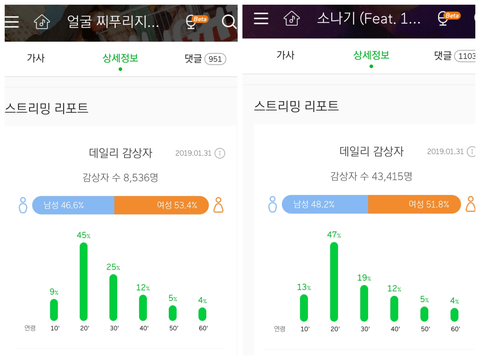 (성비중 한부분이라도 43프로 이하인곡은 안넣음, 타이틀곡만 따짐)