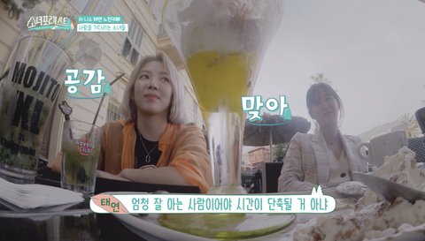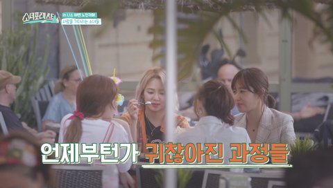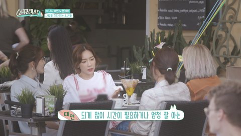 태연: 그 과정이 좀 귀찮아. (멤버들 : 맞아맞아) 귀찮아서 좀 쉬다가...