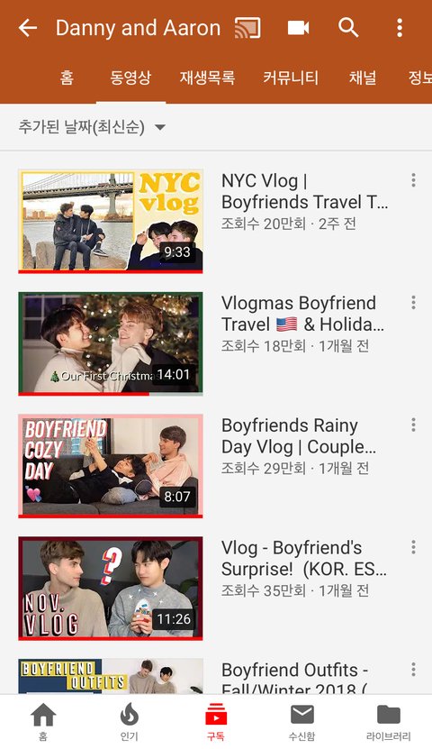 아직 영상은 많이 안 올라왔는데 영상 분위기도 쩔고 편집도 너무 예쁨 중간중간에 맨날 서로 뽀뽀한다ㅋㅋㅋ