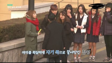 상황은 남친역을 맡으신 배우분이 여친역을 맡으신 배우분을 막 끌고 데려가려는 상황의 몰래카메라였음