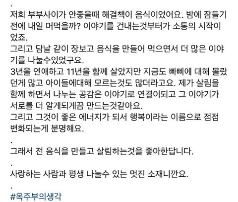 내가 집에서 할일을 하면 사랑하는 사람이 쉴수 있어요 내가 할일을 미루면 상대에게 하란 소리밖에 안되는거에요 이부분 너무 좋다