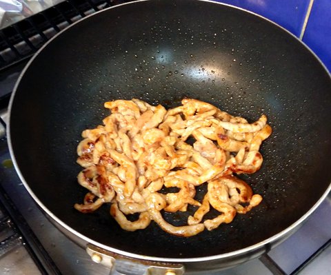 돼지고기 잡채용으로 썰어진것은 미리 밑간을 해줘요. 중화요리에서는 이를 화 라고