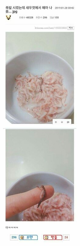 족발 시켰는데 새우젓에서 해마 나옴
