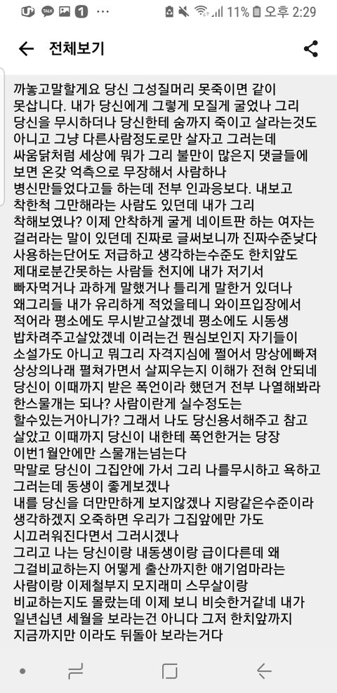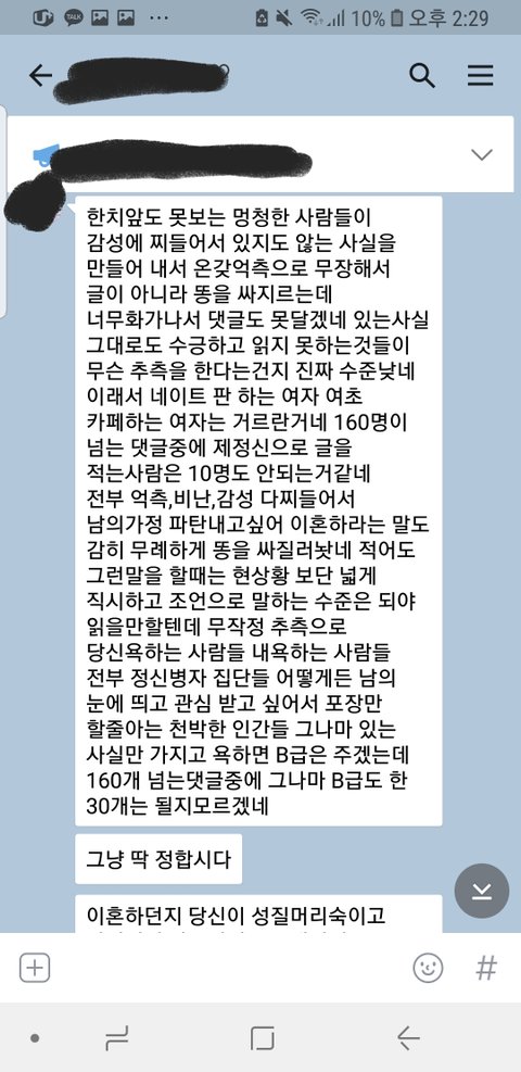 지금 남편은 댓글때문에 많이 화가난 상태입니다