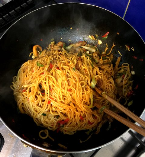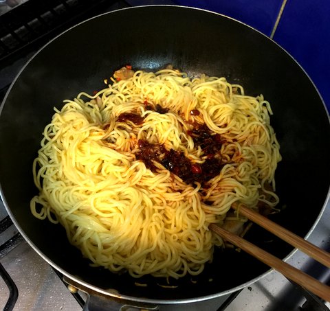 홍콩식 매운 볶음면 (라 챠오미엔) 완성입니다.