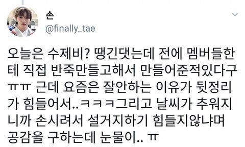 어릴때부터 온가족이 모여 태용이까지 같이 반죽해서 칼국수같은 요리하는 일이 많았다 함