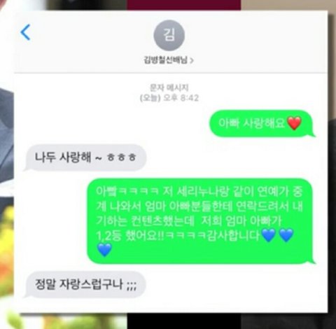 연예가중계에서 아역들이 사랑해요 라고 보내면 누가 제일 먼저 답장할지 내기함