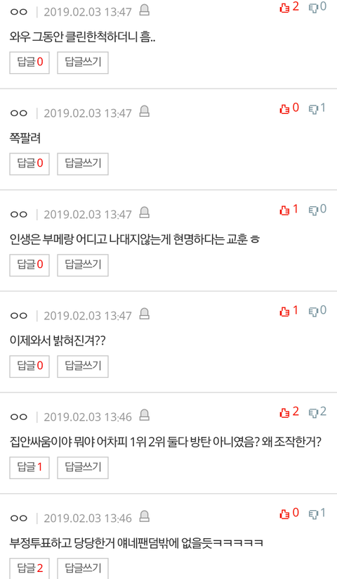 에리들이 퍼온거네 ㅋ 이걸로 방탄팬덤도 부정투표한다고 퍼온거뻔함 그래놓고 악개싸움 만드려고 ㅉㅉ
