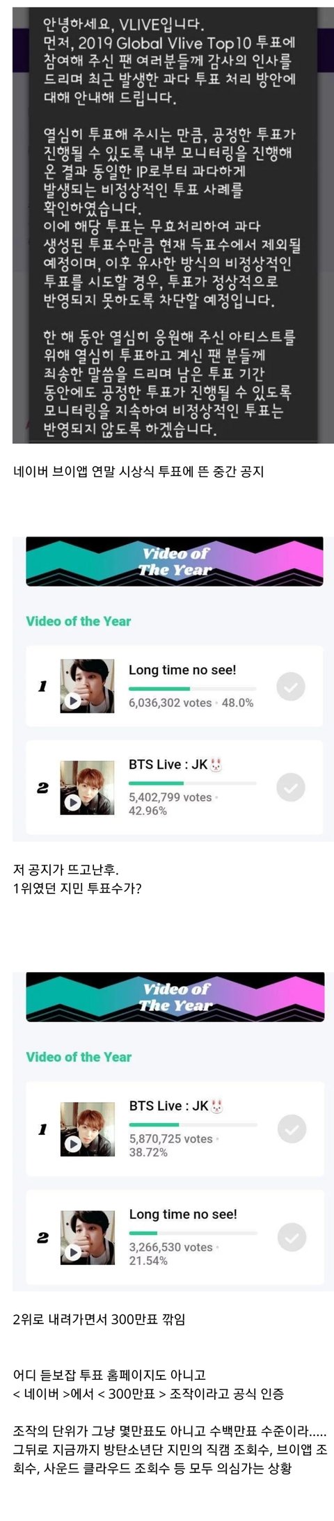 300만표 조작이라고 공식 인증한 <방탄소년단 지민> 투표