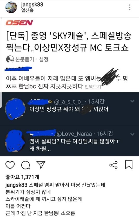 장성규 방송 열심히 하고 잘 사는구만 왜 말을 저렇게 하냐 죄 지은 것도 아니구만 지들이나 잘하지